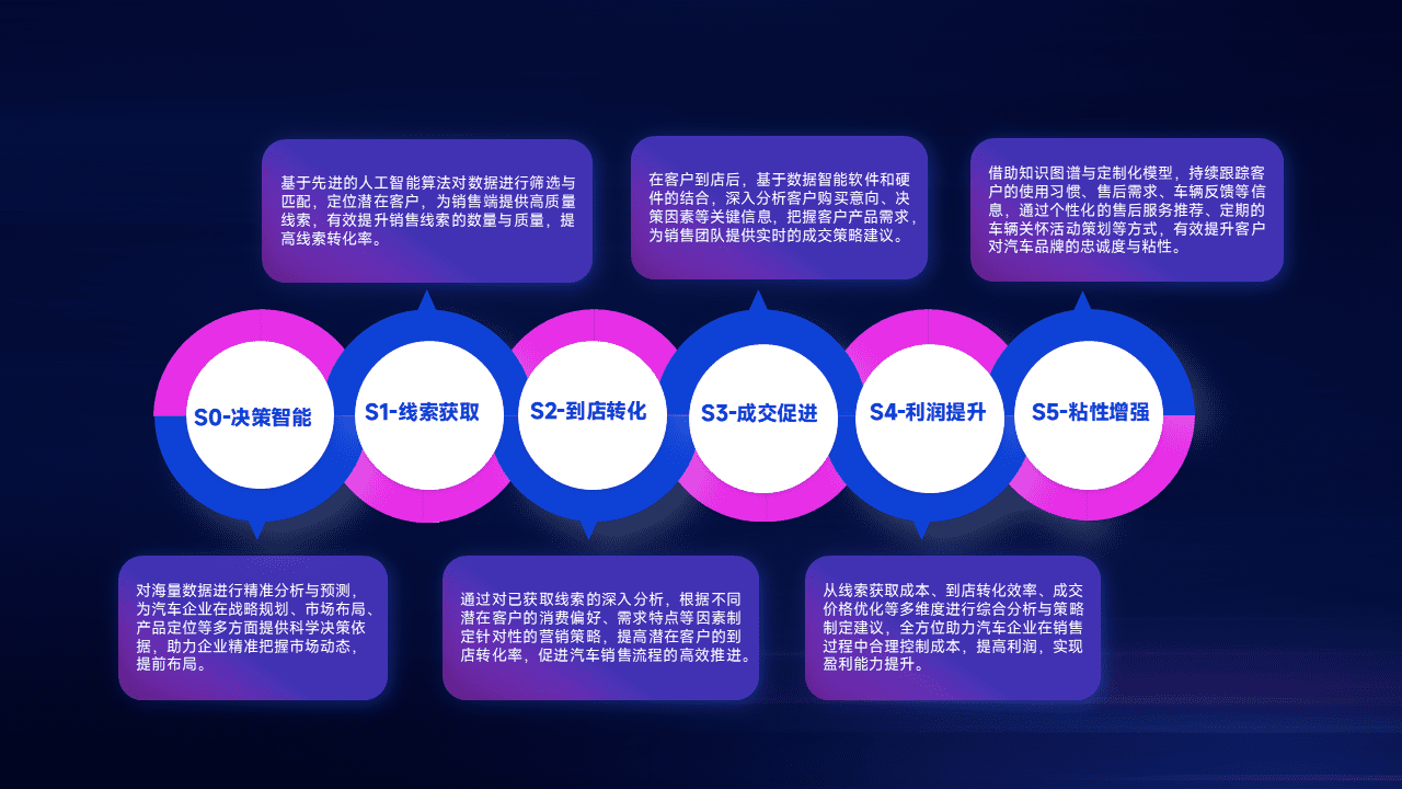 通过拓宽潜在客户来源、、优化线索分配并提高到店转化率,,,,以增强销售效率。。。。同时,,,利用线索数据不断优化分析模型,,,,有效提升转化率,,,扩大营销影响力。。
